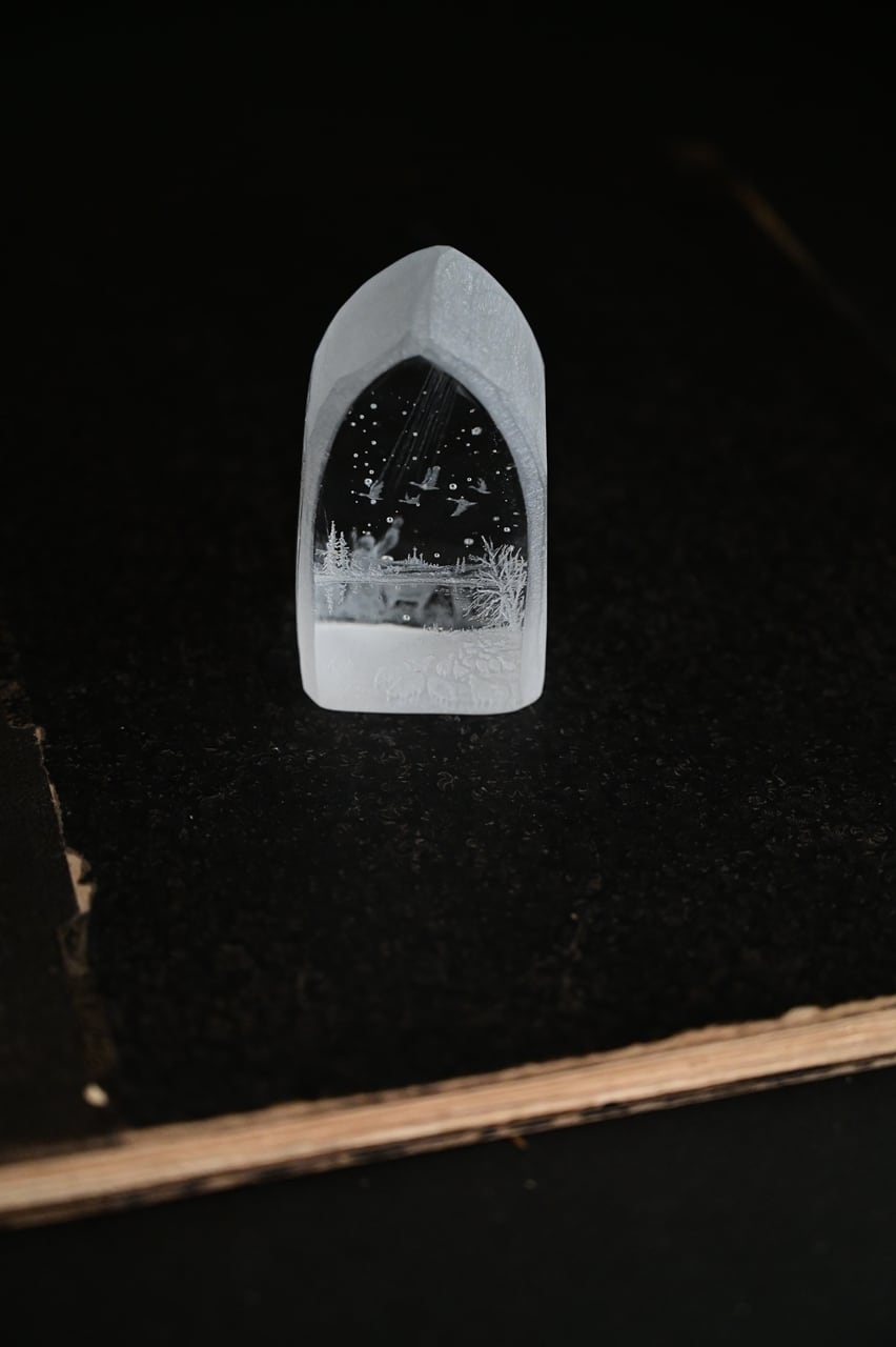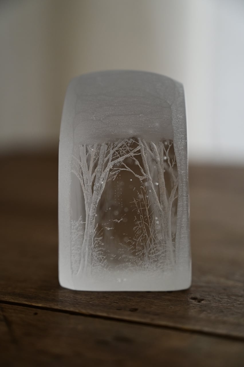 ●オブジェを手で持ちますと皮脂などで描いた線やフロストが半透明になります。絵柄が見え辛い時など食器用洗剤で優しく洗ってください。