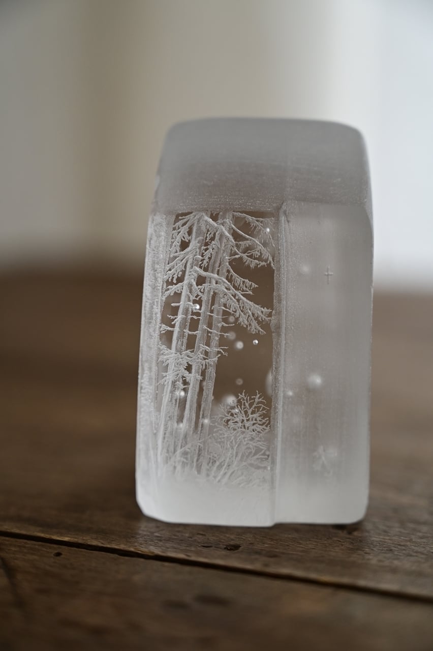 ●オブジェを手で持ちますと皮脂などで描いた線やフロストが半透明になります。絵柄が見え辛い時など食器用洗剤で優しく洗ってください。