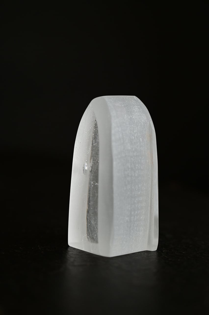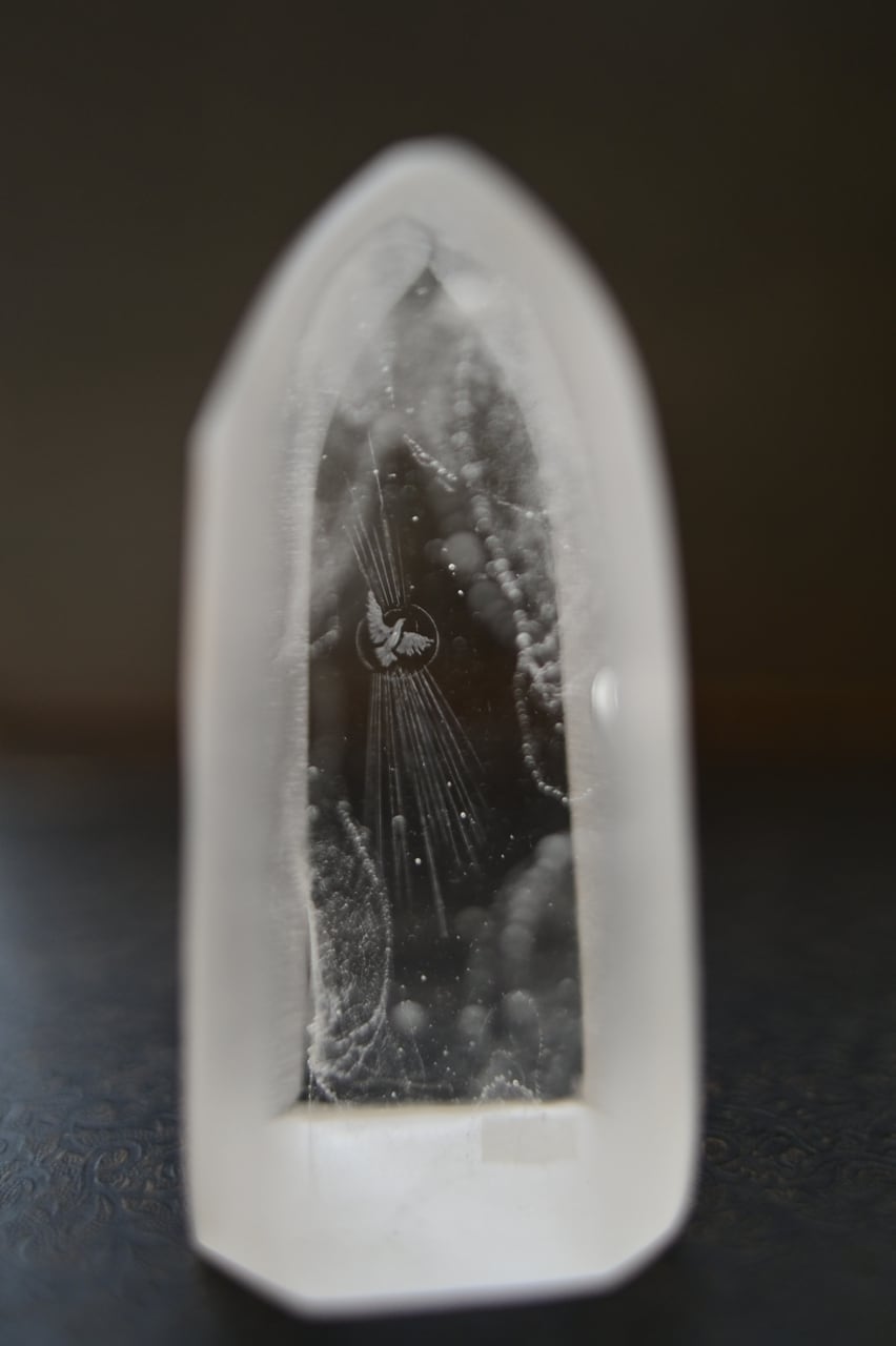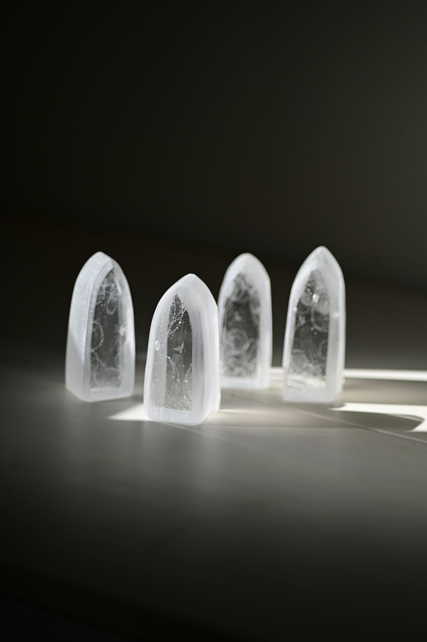 ガラスを荒削りし古い教会をイメージしています。