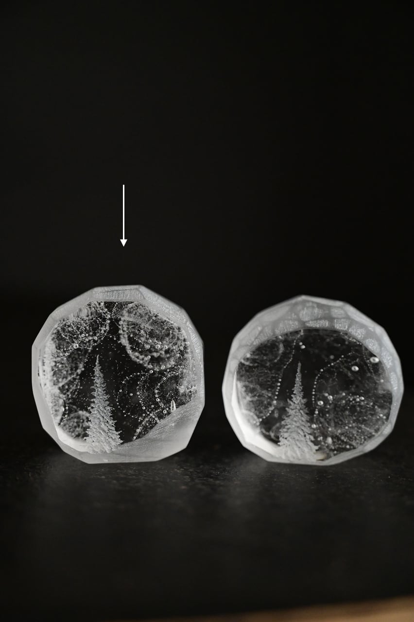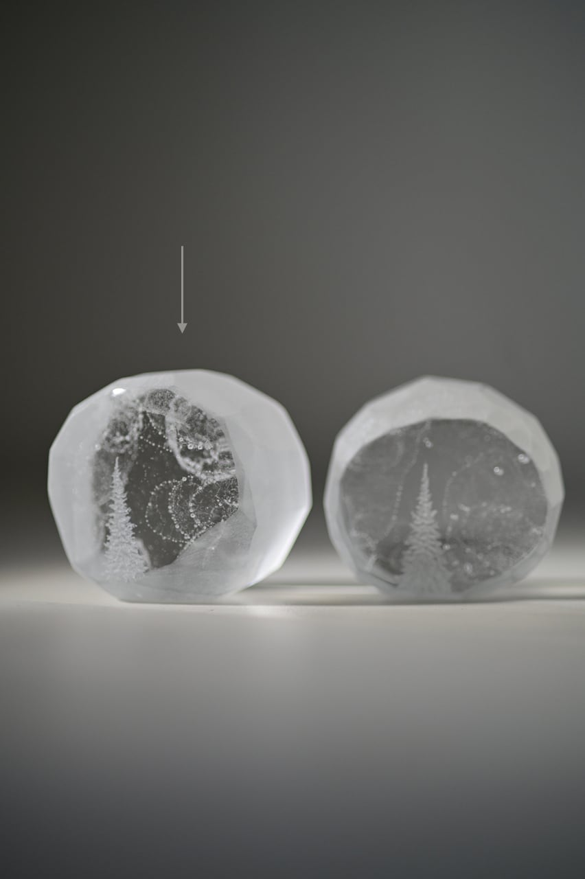 ●オブジェを手で持ちますと皮脂などで描いた線やフロストが半透明になります。絵柄が見え辛い時など食器用洗剤で優しく洗ってください。