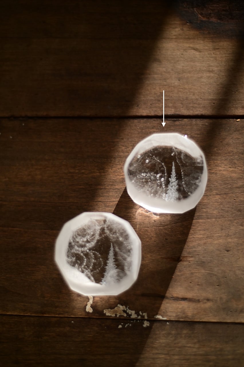 ●オブジェを手で持ちますと皮脂などで描いた線やフロストが半透明になります。絵柄が見え辛い時など食器用洗剤で優しく洗ってください。